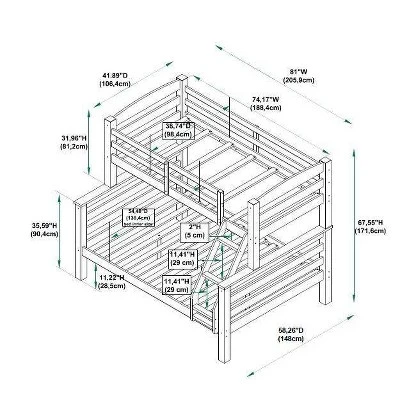 | Features | Built-In Ladder(s), Built-In Guard Rails, Converts to Two Freestanding Twin Beds, Wood Support Slats |