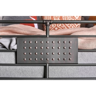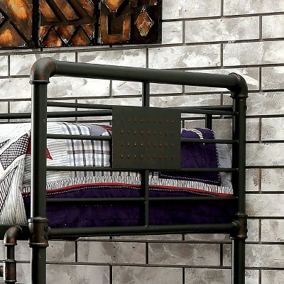 Bring cool style to your kid’s bedroom with the Derrick Kids Bunk Bed from HOMES: Inside + Out. The steel frame shows off an iconic industrial-inspired piping accent for a charming and sophisticated style your kids will love. It is complete with guard rails on the top bunk to help keep them from rolling out of bed in the middle of the night. Sleek rust accents add to the old industrial style of the bunk bed.