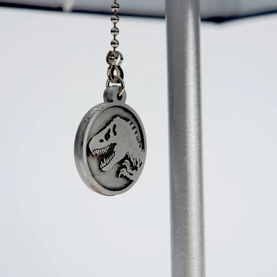 Dinosaurs coexist with humans in the universe of Jurassic World Dominion? Better leave the light on, just to be safe, since there might be actual monsters under your bed in that scenario! And what better way to light up a dinosaur fan’s night (or birthday party) than with this Jurassic World Logo Desk Lamp? The perfect lamp for the bedside table or desk of your favorite amateur paleontologist, this 14″ lamp features a shade covered with dino scenes, a metal T-Rex medallion pull, and a wooden base. The elegant aesthetic works for dinosaur fans of all ages.