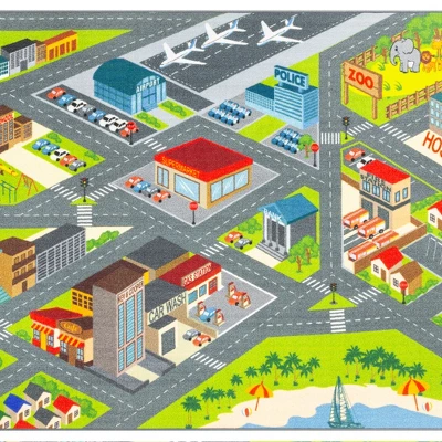 - Take Your Imagination For A Ride: An Updated Version Of Traditional Play Rugs, This Rug Was Designed For Interactive Fun. Whether Playing By Themselves Or Sharing With Friends, Your Child Will Love Taking Their Toys All Around Town – And Without Ever Missing A Stop Sign. Includes Police Station, Fire Station, Hospital, Supermarket, School, Airport, Car Wash, Bank, Library And Gas Station.