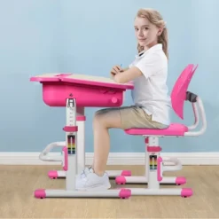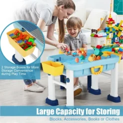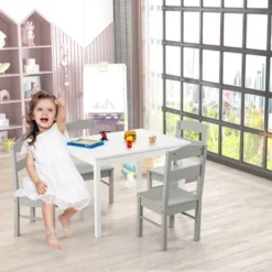 Costway 3 Piece Kids Wooden Table And Chair Set With Blackboard For Drawing Reading Green/Gray/White