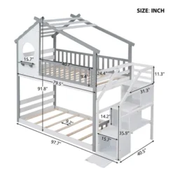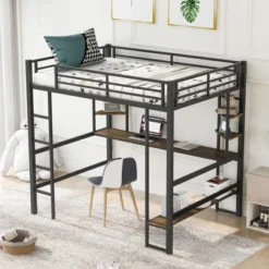 L-Shaped Twin Over Full Bunk Bed With Twin Size Loft Bed,Built-in Desk And Slide, Black – ModernLuxe