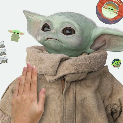 Add favorite characters to your space with The Mandalorian: The Child Peel and Stick Wall Decals by RoomMates. This wall sticker set is a fun and creative way to transform any room in seconds. To apply, simply peel and stick decals to any smooth, flat surface. Remove, reposition and reuse as often as needed. Created with high quality vinyl that s made to last, walls stay completely safe, and sticky residue is never left behind. It s fast, fun and affordable wall decor at it s best.